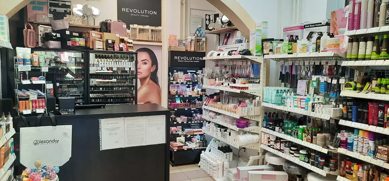 U asortimanu su zastupljeni proizvodi za negu, farbanje i stilizovanje kose, kreme, serumi, maske, tonici i pilinzi za lice i telo, kozmetika za muškarce, šminka, proizvodi za manikir, pedikir i depilaciju, kao i aksesoari (koferi, neseseri, kozmetička ogledala, četkice, gumice, šnalice...). Na ovoj lokaciji možete pronaći i manje aparate, deo nameštaja (pomoćne radne stolice) i profesionalnu opremu za kozmetičke i frizerske salone. U ponudi su zastupljeni brendovi vrhunskog kvaliteta, među kojima se posebno izdvajaju: Galaxy Professional, Skintruth, Spa Natural, Roial, GiGi, Dieffetti, Revuele, Blush, NYX Professional Makeup, Revolution Beauty London, Ardell, Infinity, Insight, KYO, Hask, FreeLimix, Macadamia, Clubman, Osmo, Crazy Color...