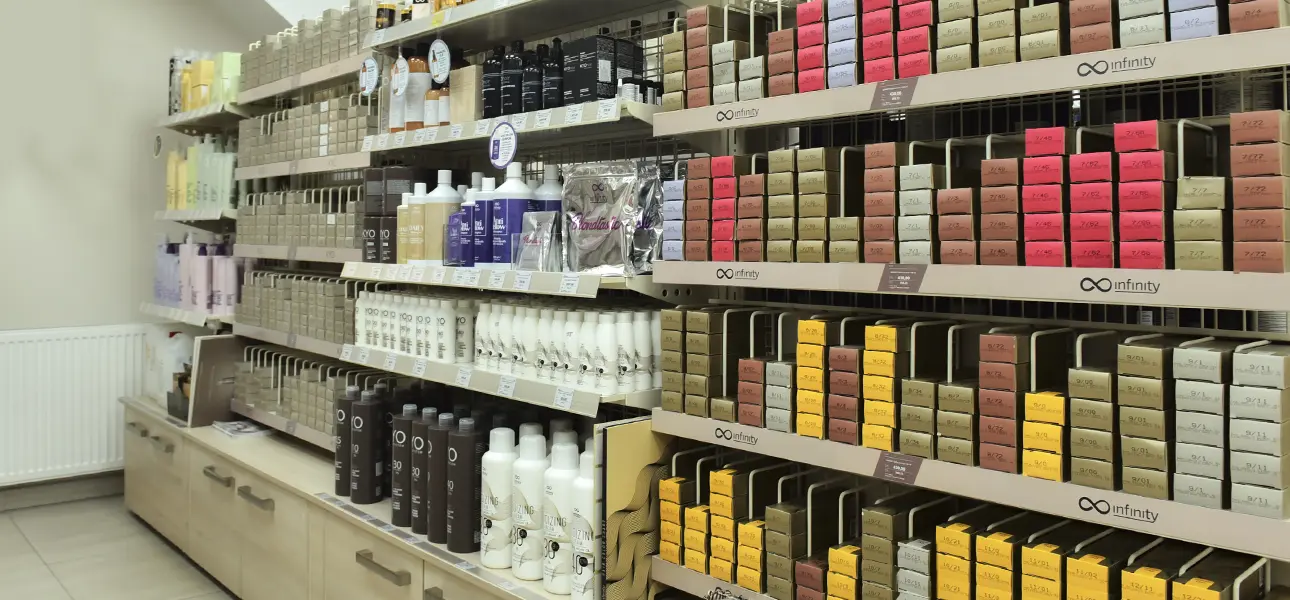 Bogat asortiman obuhvata preko 10.000 artikala vodećih svetskih brendova koji se bave proizvodnjom i prodajom šminke, kozmetike, aparata i opreme za kozmetičke i frizerske salone.
