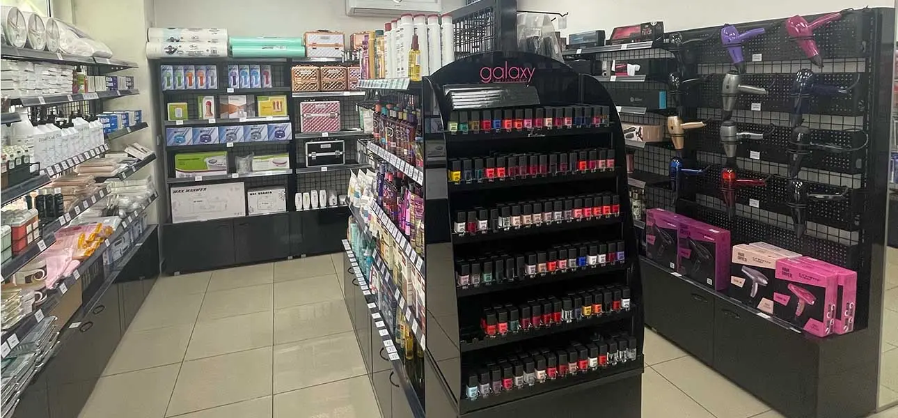 This retail location offers hair colouring and care products, depilation supplies, everything for nail care and extensions, makeup, facial and body care products, professional equipment for beauty and hairdressing salons, and much more. The available brands include: Macadamia, Infinity, KYO, FreeLimix, Insight, Hask, Osmo, Tecno Dry, Revolution Beauty London, Blush, NYX Professional Makeup, Galaxy Professional, IBD, Spa Natural, Revuele, Revox B77, Cala, and many others.