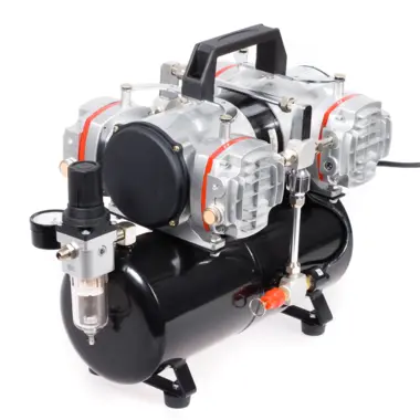 Airbrush piston compressor AS48A is a group of four-cylinder compressors. Contains compression tank volume 4L.