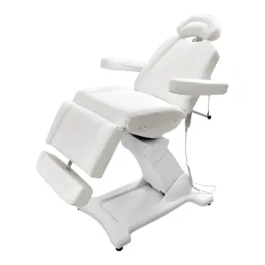 Electrically adjustable three-part cosmetic bed, for face and body salon treatments.Due to its maximum mobility, stability and comfort, the bed is suitable for all types of face and body treatments, except body massages.The chair is powered by four motors: height adjustment, backrest, footrest and kneerest. The bed can be rotated on both sides up to 120º angle.Adjusting the backrest, footrest and kneerest provides additional comfort to the client during the treatment.