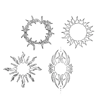 Pack of 4 stencils: Barbed Wire, Henna Belly, Sunburst, Gothic Spray through these stencils using your spray gun and coloured body art paint to create great looking, long lasting body decoration. Looks like real tattoos, but without the pain and permenance. Directions for use >>>