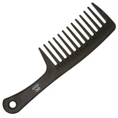 Wide tooth coffee ground hair comb for detangling wavy and curly hair. Heat resistant at temperatures up to 80°C. It is gentle on hair and scalp.