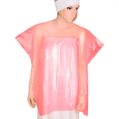 Disposable cape in recycled plastic for colouring treatments and hairwashing.