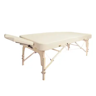 Two-piece massage bed for facial and body treatments.