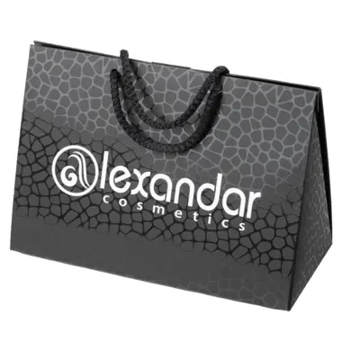 Elegantna ukrasna kesa u crnoj boji, sa logom Alexandar Cosmetics, idealna za pakovanje poklona. Sadrži čičak traku za fiksiranje, i savršena je za pakovanje kozmetike, nakita ili poslovnih poklona.