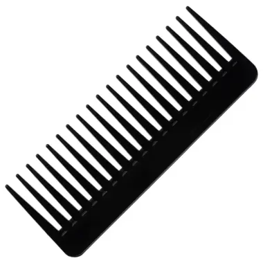 Češalj za kosu izrađen od kvalitetne plastike. Poseduje široko raspoređene zupce za raščešljavanje guste, talasaste i kovrdžave kose. Zaobljeni zupci češlja su nežni prema kosi i temenu glave.