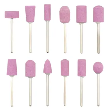 Set kamenih nastavaka za električnu turpiju. Brusni nastavci su različitih oblika specijalno namenjeni za obradu kože oko noktiju kao i zadebljanja kože na stopalima, pri pedikir tretmanu.