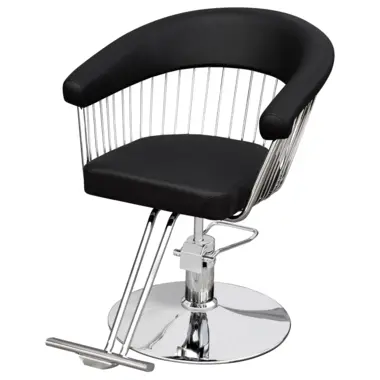 Frizerska radna stolica crne boje, sa hidraulikom, namenjena za korišćenje u salonima prilikom šišanja, feniranja i drugih frizerskih tretmana. Zahvaljujući mogućnosti podešavanja visine stolice, klijentu se omogućava dodatna udobnost, a frizeru komforan rad.