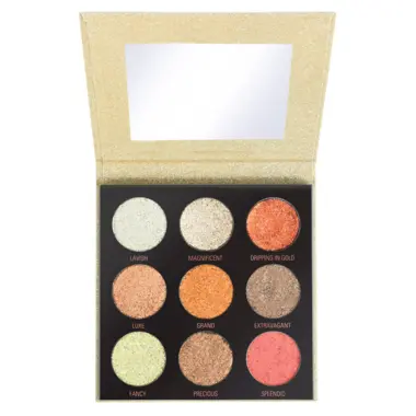 Paleta Midas Touch poseduje 9 presovanih glitera izuzetne pigmentacije. Boje su kompatibilne, mogu se lako kombinovati za kreiranje glamuroznog makeup izgleda sa gliter finišom.