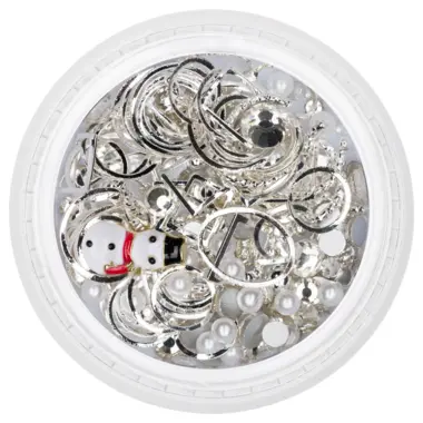 Ukrasi za nokte u srebrnoj boji, sa novogodišnjim motivima, različitih oblika, izrađeni od ultra tankog i laganog metala.