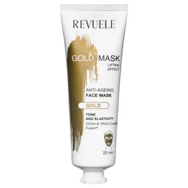 Gold maska za zatezanje kože lica. COVA B TROX® kompleks ima trenutni lifting efekat i oblaže kožu zaštitnim mikro filmom. Kolagen, jedan od glavnih sastojaka maske, pomaže u povećanju elastičnosti i deluje protiv starenja kože. Vitamin B5 revitalizuje i hrani kožu, dajući joj tonus i sjaj. Fusion®, aktivni sastojak maske, hidrira i omekšava kožu lica.