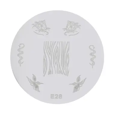 Okrugli metalni šablon PMEO1 E28 napravljen od visoko kvalitetnog nerđajućeg čelika sa različitim ugraviranim dizajnom za jednostavnu upotrebu.