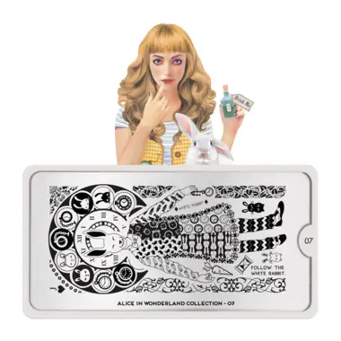 Alice 07 šablon pločica napravljena je od visoko kvalitetnog nerđajućeg čelika sa velikim izborom ugraviranih šara i pozadinom od vinila, za jednostavnu upotrebu.