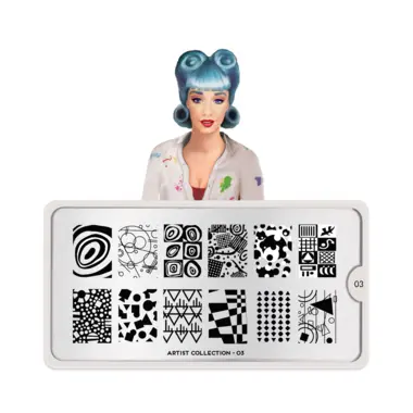 Artist 03 šablon pločica napravljena je od visoko kvalitetnog nerđajućeg čelika sa velikim izborom ugraviranih šara i pozadinom od vinila, za jednostavnu upotrebu.