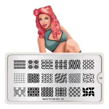 Back to 60s šablon pločica napravljena je od visoko kvalitetnog nerđajućeg čelika sa velikim izborom ugraviranih šara i pozadinom od vinila, za jednostavnu upotrebu.