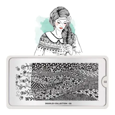 Doodles 02 šablon pločica napravljena je od visoko kvalitetnog nerđajućeg čelika sa velikim izborom ugraviranih šara i pozadinom od vinila, za jednostavnu upotrebu.