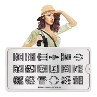 Explorer 18 šablon pločica napravljena je od visoko kvalitetnog nerđajućeg čelika sa velikim izborom ugraviranih šara i pozadinom od vinila, za jednostavnu upotrebu.