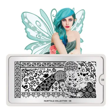 Fairytale 08 šablon pločica napravljena je od visoko kvalitetnog nerđajućeg čelika sa velikim izborom ugraviranih šara i pozadinom od vinila, za jednostavnu upotrebu.