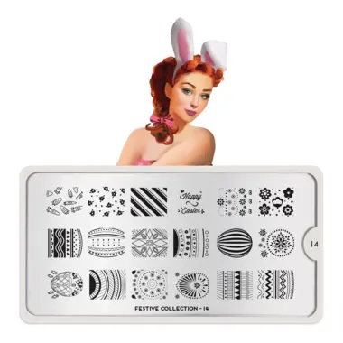 Festive 14 šablon pločica napravljena je od visoko kvalitetnog nerđajućeg čelika sa velikim izborom ugraviranih šara i pozadinom od vinila, za jednostavnu upotrebu.