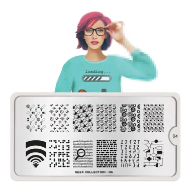 Geek 04 šablon pločica napravljena je od visoko kvalitetnog nerđajućeg čelika sa velikim izborom ugraviranih šara i pozadinom od vinila, za jednostavnu upotrebu.