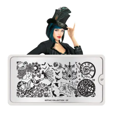 Gothic 07 šablon pločica napravljena je od visoko kvalitetnog nerđajućeg čelika sa velikim izborom ugraviranih šara i pozadinom od vinila, za jednostavnu upotrebu.