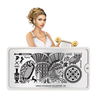 MoYou-London Greek Mythology 08 šablon pločica napravljena je od visoko kvalitetnog nerđajućeg čelika sa velikim izborom ugraviranih šara i pozadinom od vinila, za jednostavnu upotrebu.