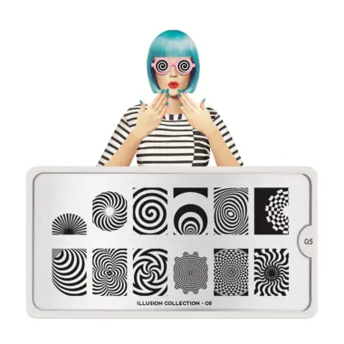 Illusion 05 šablon pločica napravljena je od visoko kvalitetnog nerđajućeg čelika sa velikim izborom ugraviranih šara i pozadinom od vinila, za jednostavnu upotrebu.