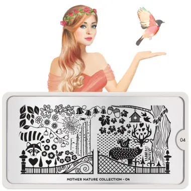 Nature 04 šablon pločica napravljena je od visoko kvalitetnog nerđajućeg čelika sa velikim izborom ugraviranih šara i pozadinom od vinila, za jednostavnu upotrebu.