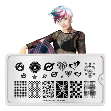 Punk 01 šablon pločica napravljena je od visoko kvalitetnog nerđajućeg čelika sa velikim izborom ugraviranih šara i pozadinom od vinila, za jednostavnu upotrebu.