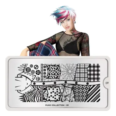 Punk 09 šablon pločica napravljena je od visoko kvalitetnog nerđajućeg čelika sa velikim izborom ugraviranih šara i pozadinom od vinila, za jednostavnu upotrebu.