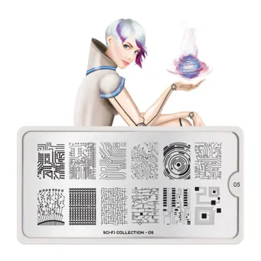 Sci-Fi 05 šablon pločica napravljena je od visoko kvalitetnog nerđajućeg čelika sa velikim izborom ugraviranih šara i pozadinom od vinila, za jednostavnu upotrebu.