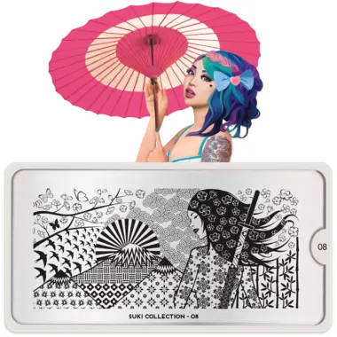 Suki 08 šablon pločica napravljena je od visoko kvalitetnog nerđajućeg čelika sa velikim izborom ugraviranih šara i pozadinom od vinila, za jednostavnu upotrebu.