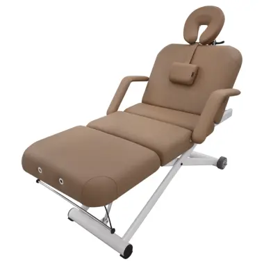 Trodelni kozmetički krevet sa elektropodešavanjem namenjen za sve tretmane lica i tela i za sve tipove masaže.Krevet pokreću tri motora koja omogućavaju podešavanje visine, naslona za leđa i naslona za kolena.Podešavanjem naslona za leđa i naslona za kolena, klijentu se omogućava dodatna udobnost tokom tretmana.