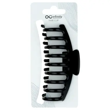 Ukrasna šnala za kosu u crnoj boji, izrađena od plastike. Poseduje zaobljene zupce, a zahvaljujući svojoj veličini i obliku može da obuhvati i fiksira veći deo kose. Namenjena je za upotrebu na dugoj i kosi srednje dužine.