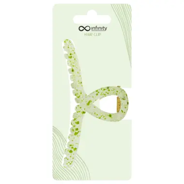 Spiralna ukrasna šnala za kosu, transparentna sa zelenim tačkicama, izrađena od kvalitetne plastike. Zahvaljujući svojoj veličini i obliku može da obuhvati i fiksira veći deo kose. Namenjena dugoj i kosi srednje dužine.