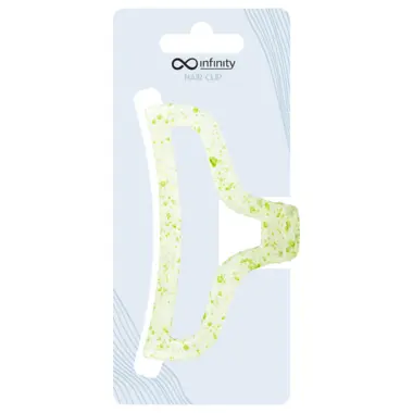 Transparentna ukrasna šnala za kosu, sa zelenim tačkicama, izrađena od kvalitetne plastike. Zahvaljujući svojoj veličini i obliku može da obuhvati i fiksira veći deo kose. Namenjena dugoj i kosi srednje dužine.