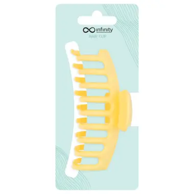 Žuta ukrasna šnala za kosu, izrađena od plastike. Poseduje zaobljene zupce, a zahvaljujući svojoj veličini i obliku može da obuhvati i fiksira veći deo kose. Namenjena je za upotrebu na dugoj i kosi srednje dužine.