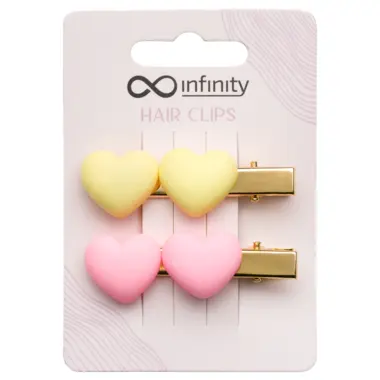 Metalne šnalice za kosu, sa ukrasom u obliku srca, roze i žute boje. Šnalice su pogodne za korišćenje prilikom stilizovanja kose i kreiranja različitih frizura. Dizajn šnale čini da uobičajena frizura postane atraktivna.