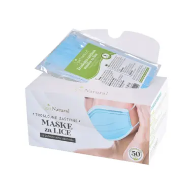 Troslojne zaštitne maske za lice izrađene od netkanog tekstila, sprečavaju udisanje polena, alergena i prašine. Štite od 95% bakterija i virusa koji se prenose vazdušnim putem.
