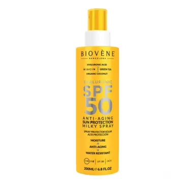 Lagani, vodootporni sprej za zaštitu od sunčevog zračenja, obogaćen hijaluronskom kiselinom, niacinamidom i ekstraktima zelenog čaja i kokosa. Nemasni losion se brzo upija u kožu i formulisan je sa faktorom SPF 50 za visoku zaštitu od UVA i UVB sunčevih zraka koji mogu biti glavni uzrok pojave fleka i diskoloracije na koži.