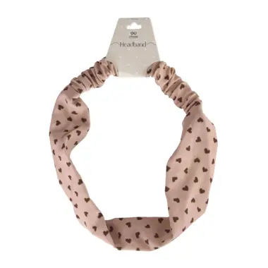 Traka za kosu atraktivnog dezena, nežno roze boje sa srcima.