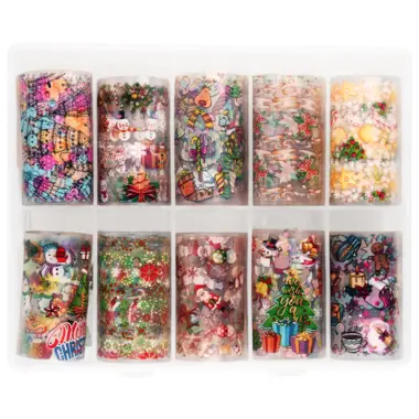 Transfer folije za nokte sa novogodišnjim motivima, u setu od 10 komada.