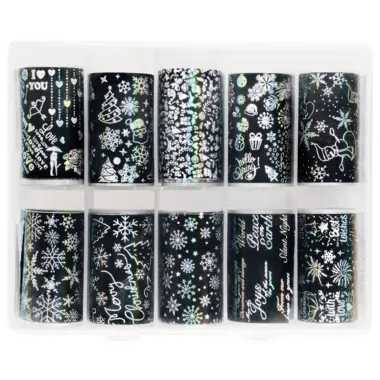 Transfer folije za nokte sa novogodišnjim motivima, u setu od 10 komada.