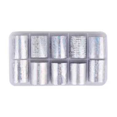Transfer folije za nokte sa modernim holografskim dizajnom.